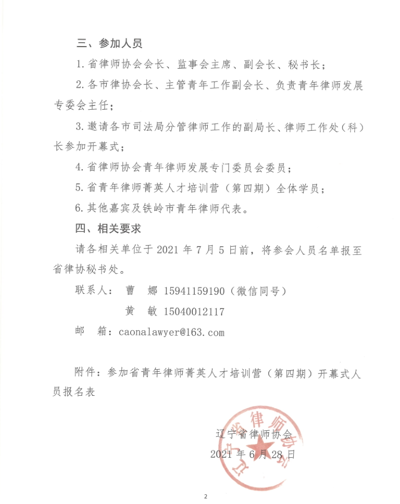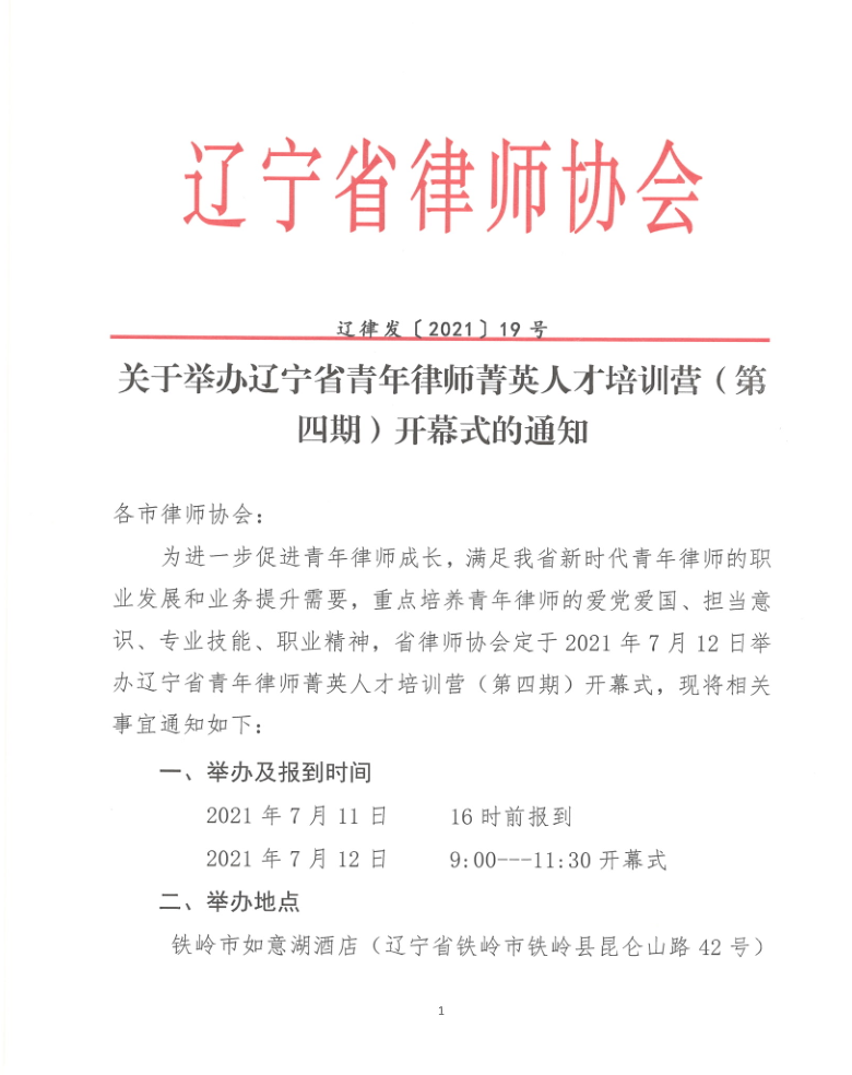 辽律发〔2021〕19号 关于举办辽宁省青年律师菁英人才培训营(第四期)开幕式的通