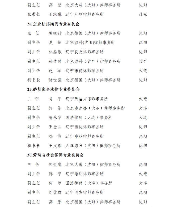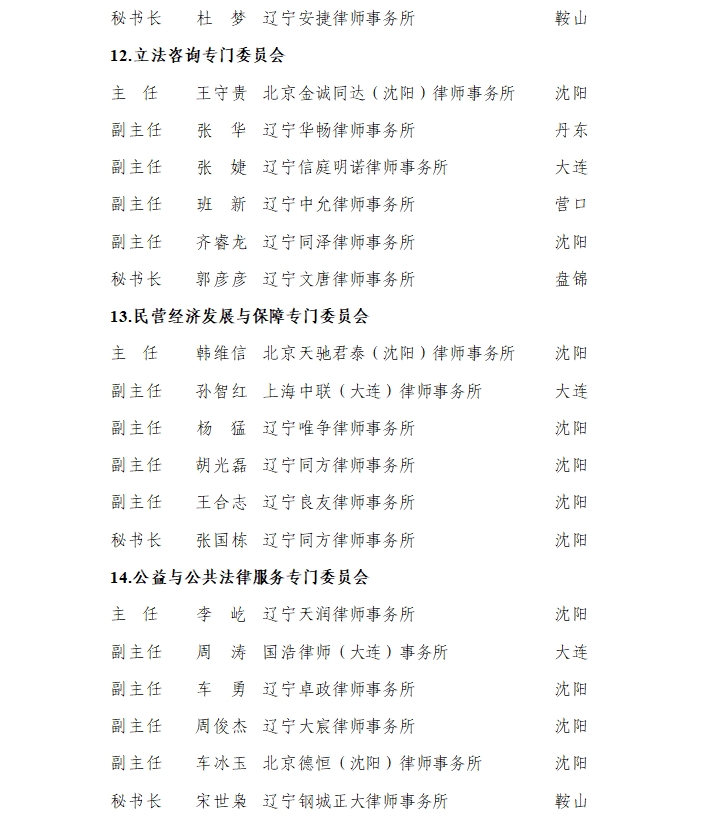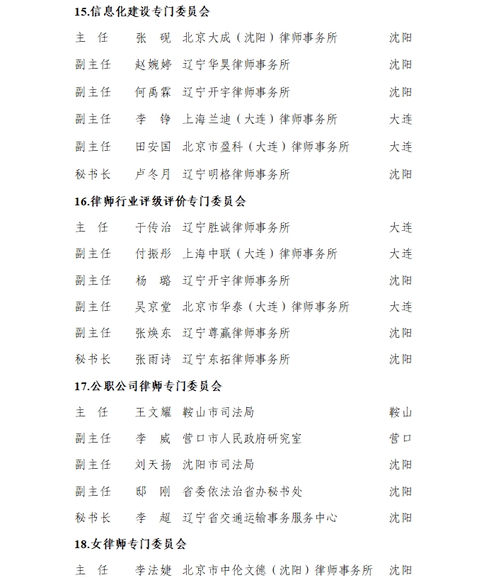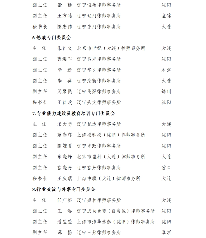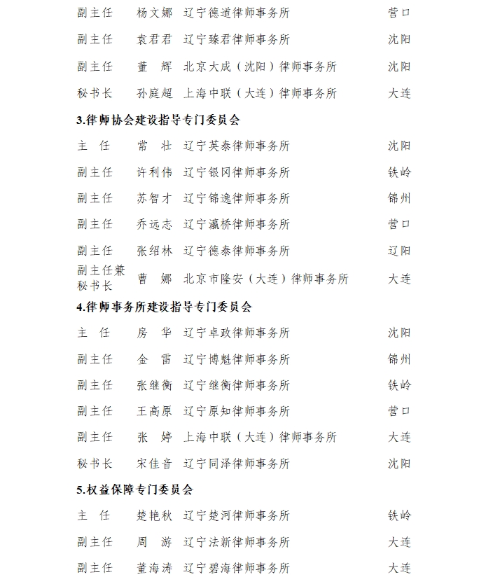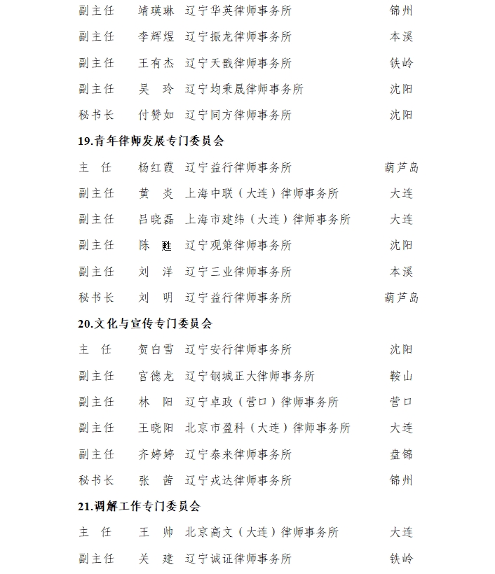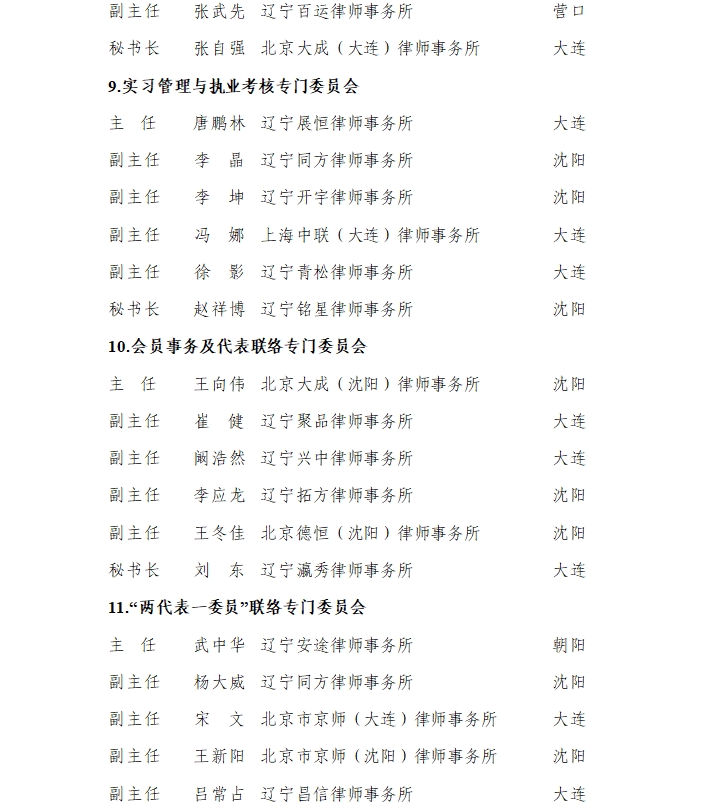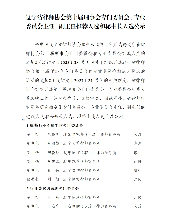 辽宁省律师协会第十届理事会专门委员会、专业委员会主任、副主任推荐人选和秘书长人选公示