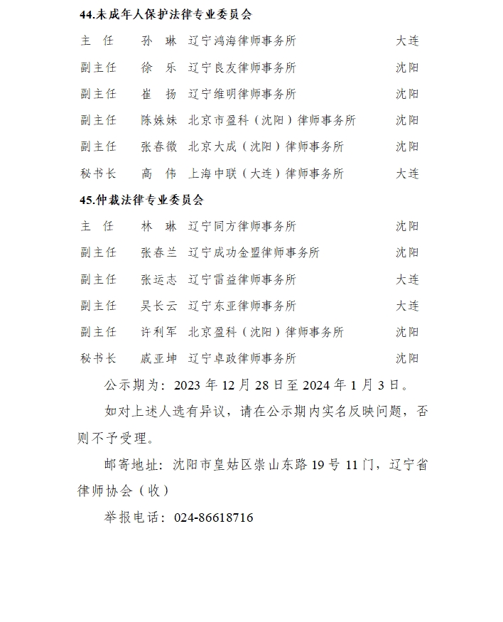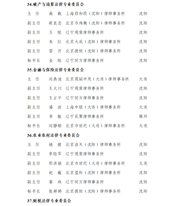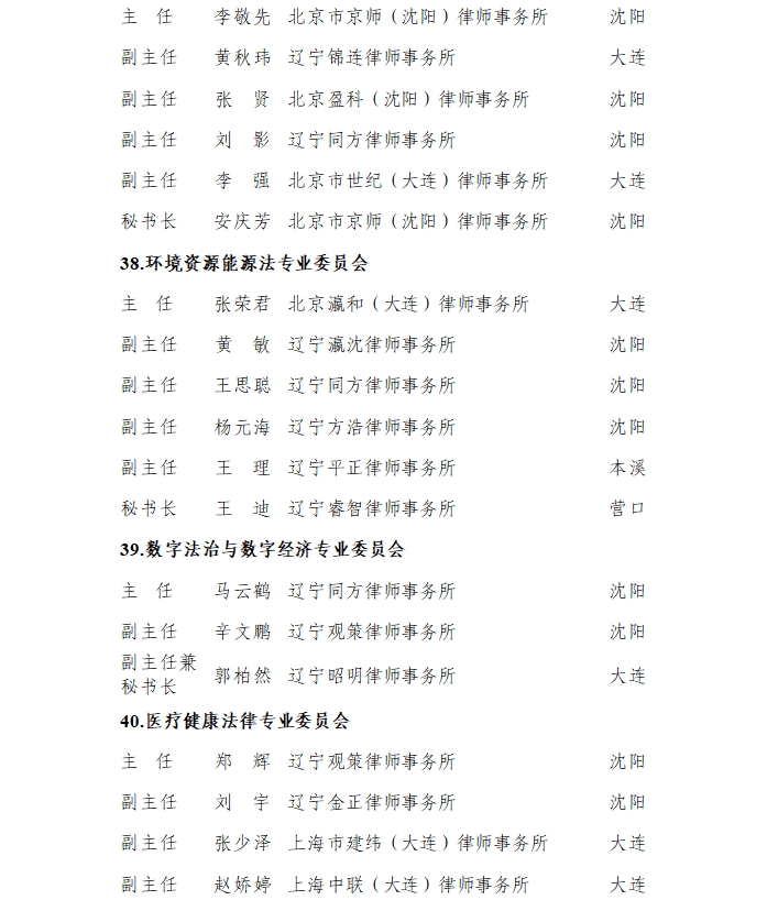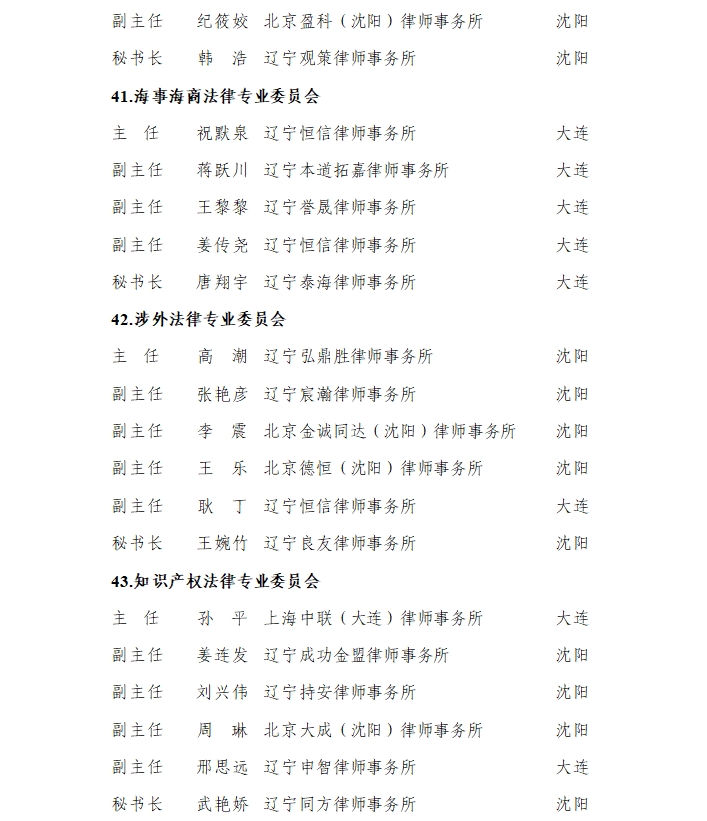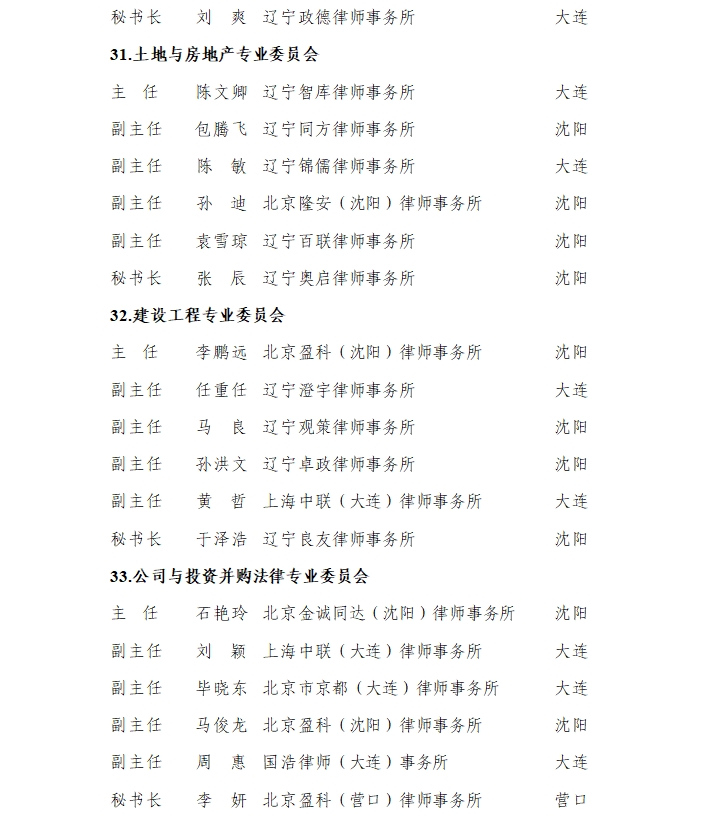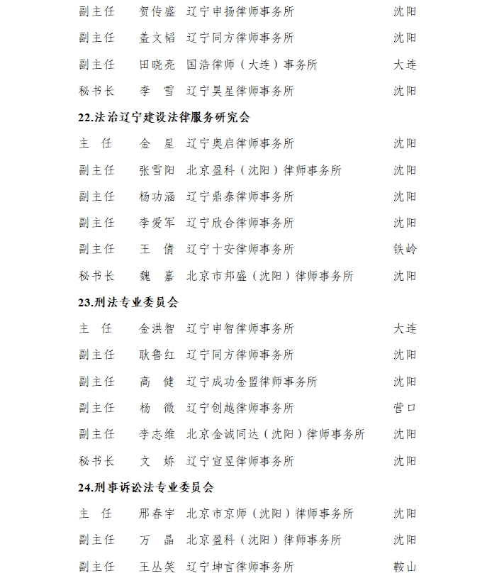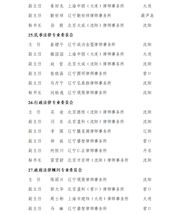 辽宁省律师协会第十届理事会专门委员会、专业委员会主任、副主任推荐人选和秘书长人选公示